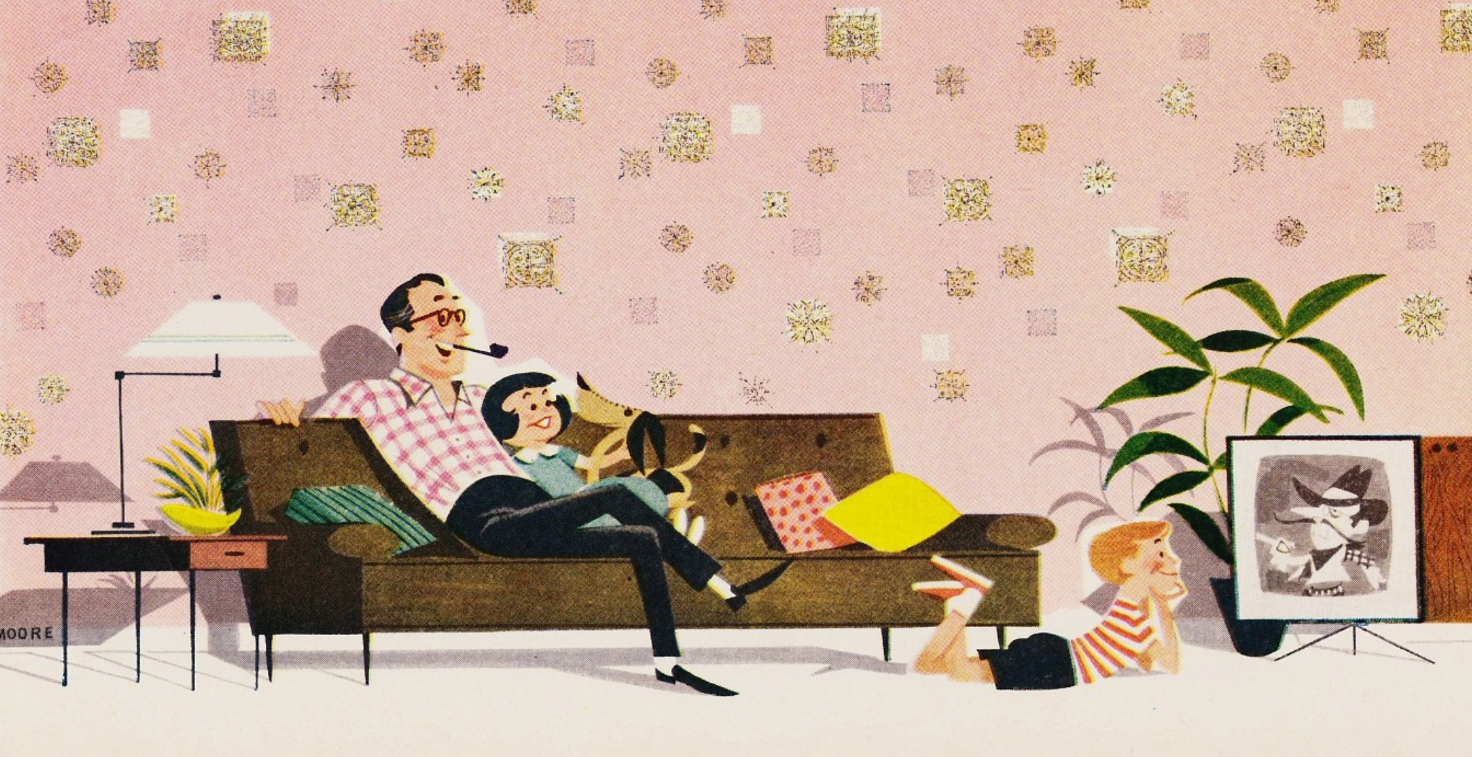 Top photo courtesy Heather David Flikr collection ‘1957 Wall-Tex scrubbable wallpaper ad.’